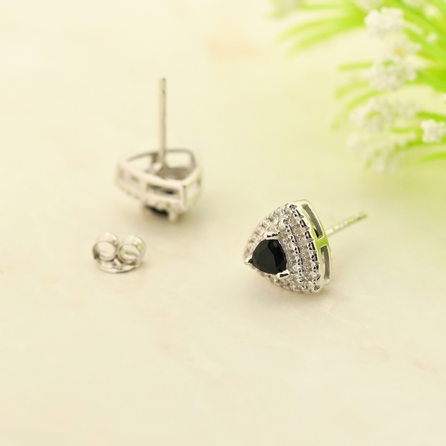 These Black Trielle Rhodium Earrings blend elegance with modern glamour. Crafted from sterling silver and finished with a sleek rhodium plating, their triangular shape adds a contemporary edge. Perfect for adding a refined statement to any outfit, these earrings offer lasting shine and subtle sophistication.