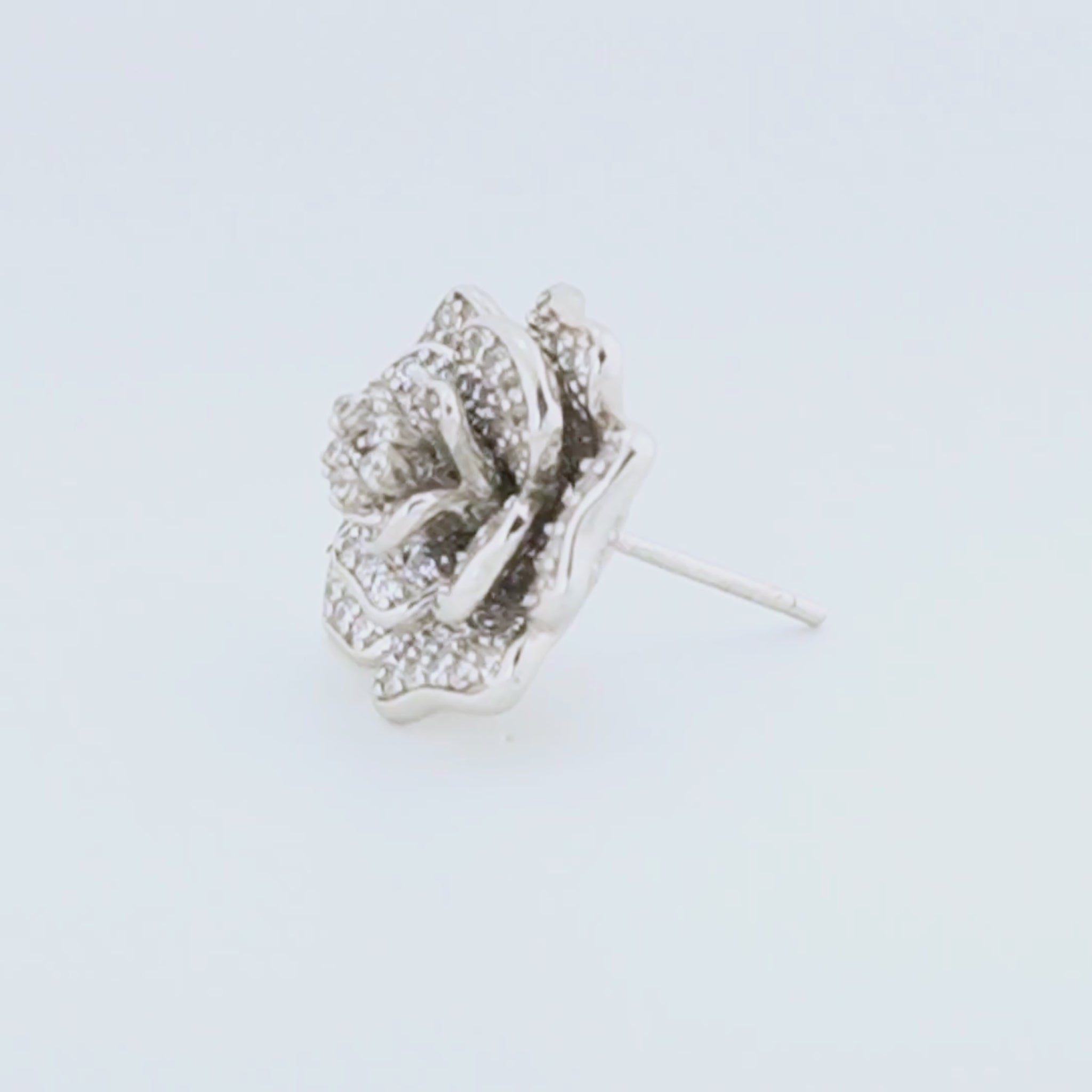 The Bloom Rhodium Earrings are crafted in sterling silver with a radiant rhodium finish, shaped into an elegant rose design. Their refined glamour and sophisticated style make them an ideal accessory to enhance any outfit, adding a subtle yet striking touch of luxury.