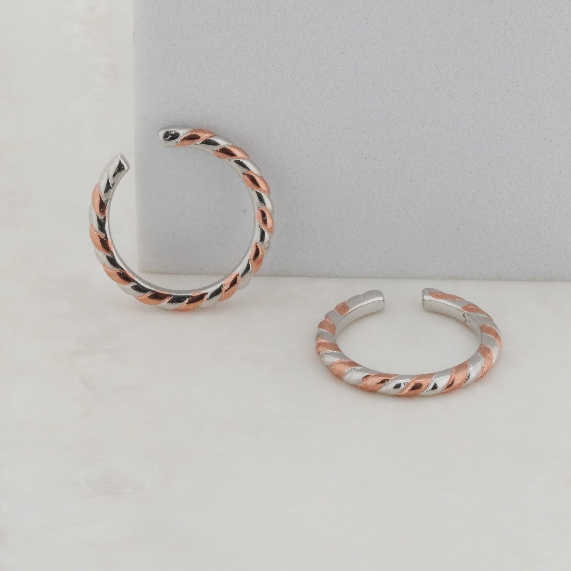 Elevate your style with these Braids Rose Gold and Rhodium Toe Rings, blending warm rose gold tones with the sleek shine of rhodium. Their intricate braided design offers a refined yet delicate statement, perfect for adding a sophisticated touch to any look. Lightweight and comfortable, these toe rings enhance your elegance with subtle shimmer and timeless charm.