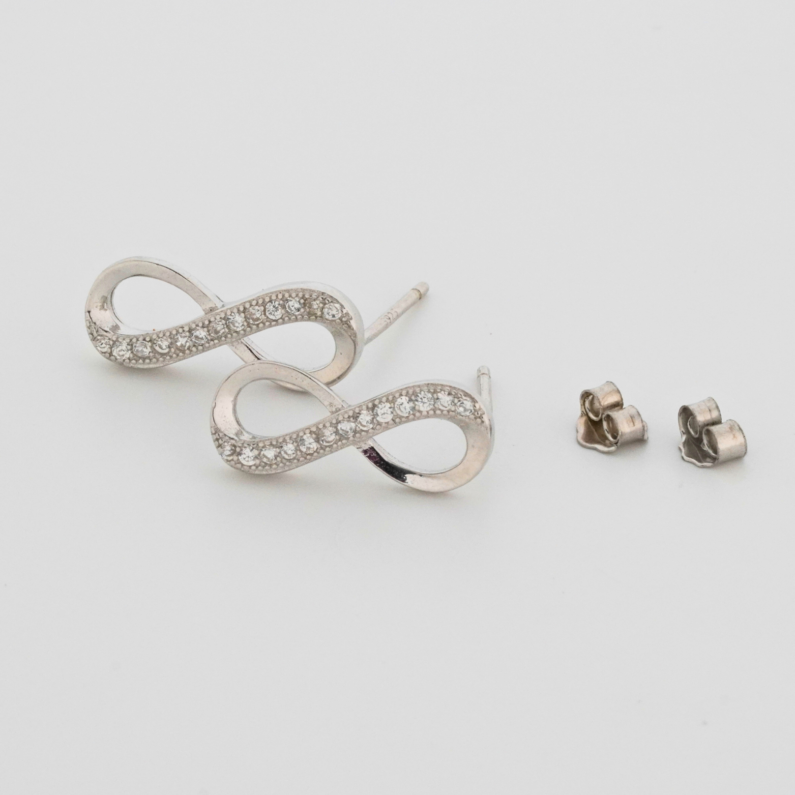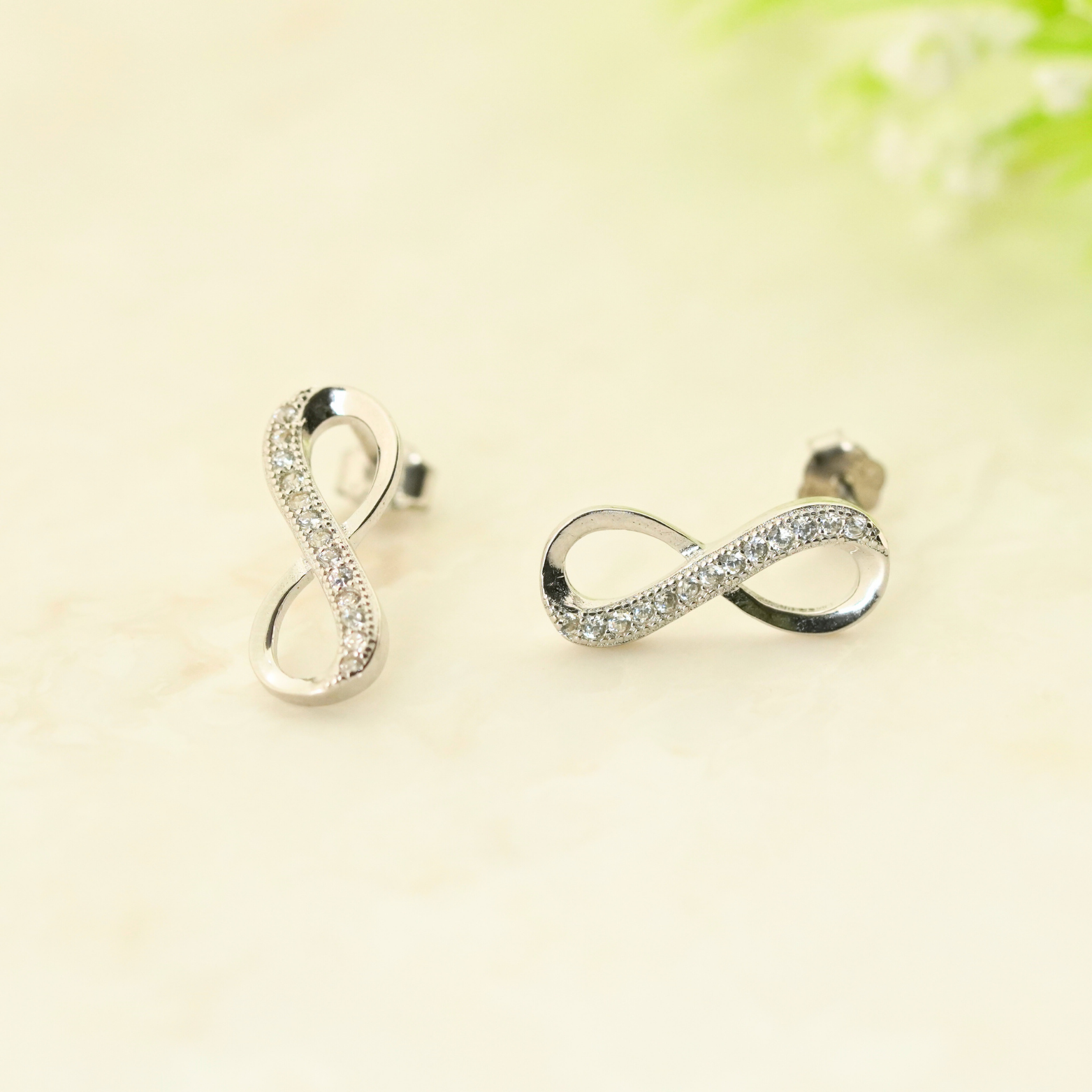Elevate your style with the Eternal Rhodium Earrings, featuring a sleek infinite symbol crafted from sterling silver and finished with a radiant rhodium plating. These earrings offer a timeless elegance that complements both everyday and special occasion looks with subtle sophistication and lasting shine.