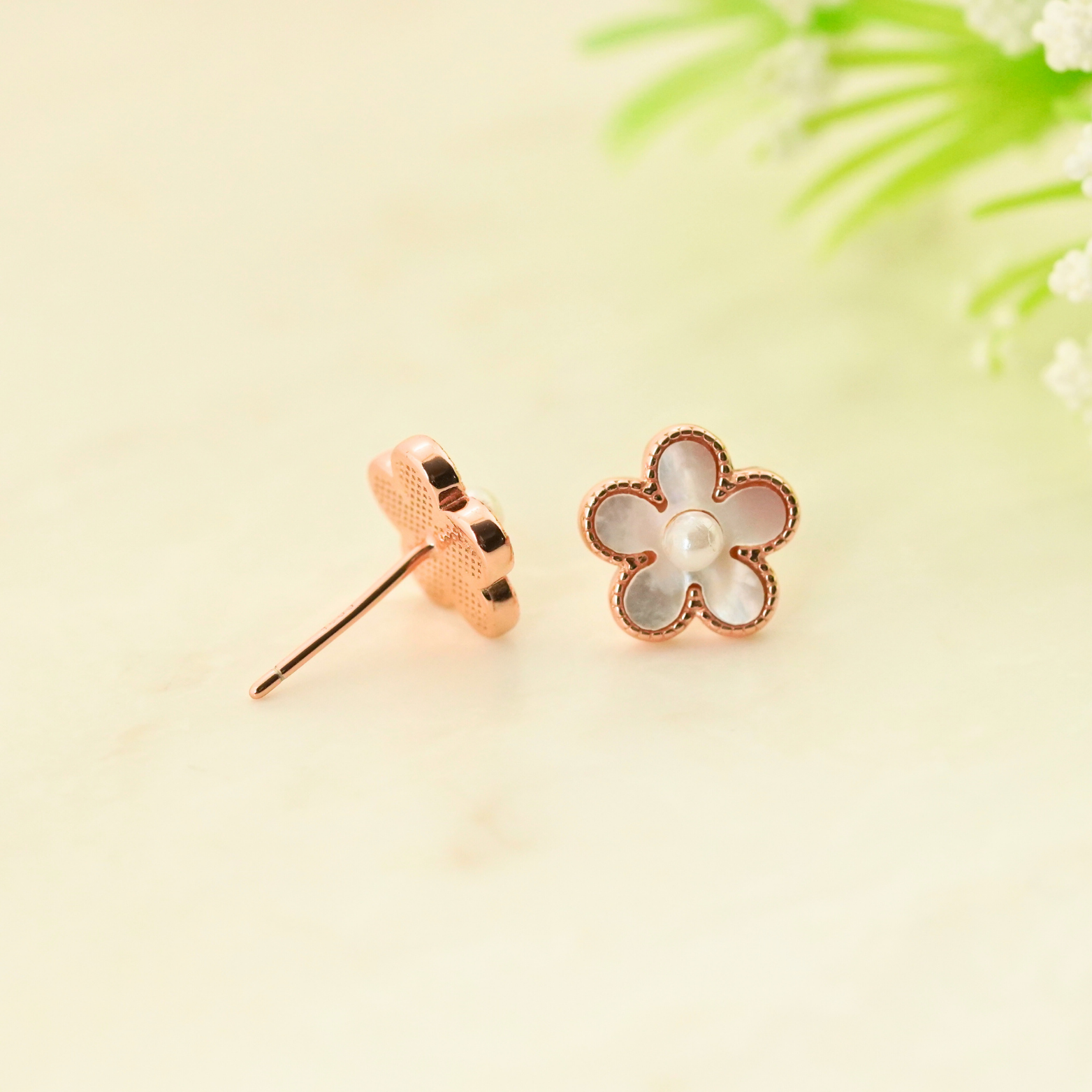 The Flora Rose Gold Earrings combine sterling silver craftsmanship with the warm glow of rose gold and the lustrous finish of rhodium. Designed to balance elegance and charm, these earrings offer a sophisticated touch to any outfit, making them perfect for those who appreciate refined, timeless accessories with a subtle, cute appeal.