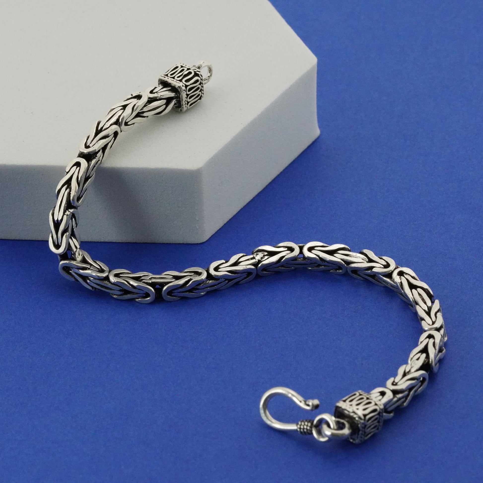 The Julius Darkened Bracelet is crafted from sterling silver with a refined oxidized polish, delivering a sophisticated and distinctive accessory for men. Its subtle darkened finish enhances the bracelet’s elegance, making it a perfect complement to both formal and casual attire.