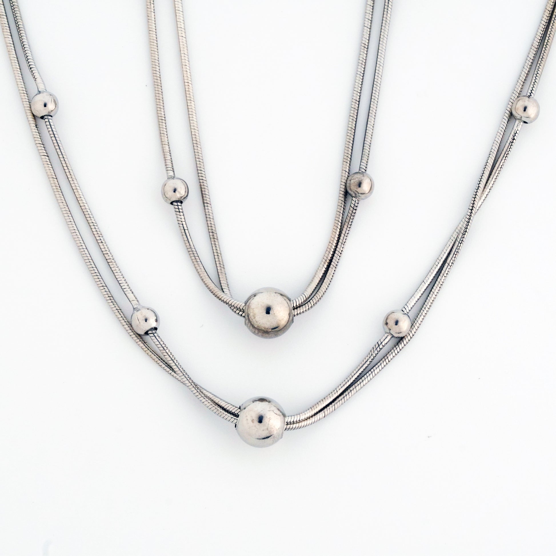 The Layered Selene Rhodium Anklet features a delicate, layered design crafted from sterling silver with a sleek rhodium finish. Its minimal yet sophisticated style adds a subtle, polished look to your ensemble, perfect for elevating both everyday wear and special occasions.