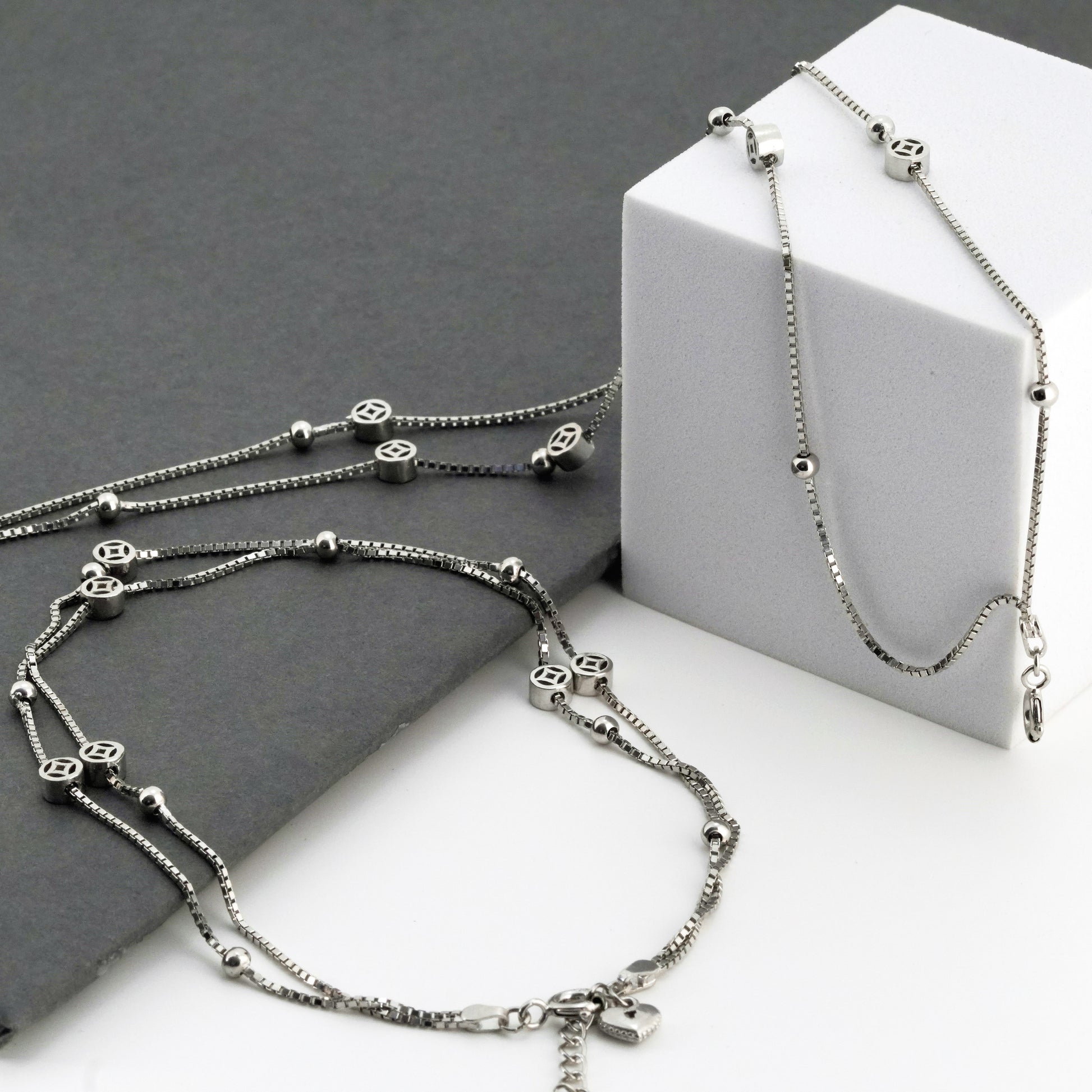 Layers Minimal Rhodium Anklet