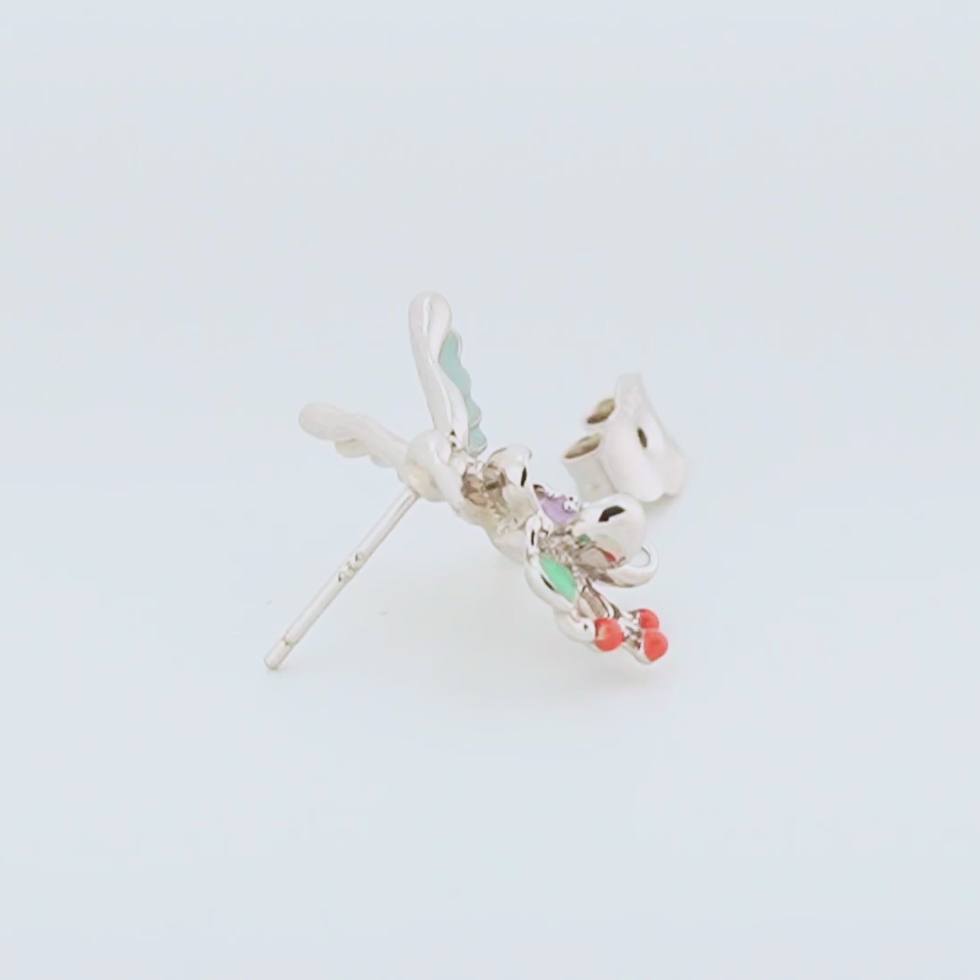 The Plume Enamel Rhodium Earrings showcase a graceful bird-shaped design, meticulously crafted in sterling silver and enhanced with a rhodium finish for a brilliant, enduring lustre. These beautifully detailed earrings offer a sophisticated accent, perfect for adding a subtle yet distinctive charm to your wardrobe. Ideal for those who appreciate refined artistry and timeless elegance.