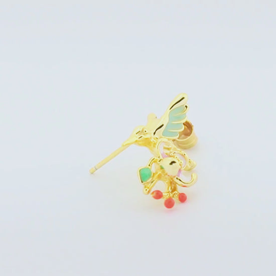 The Plume Enamel Rhodium & Gold Earrings feature a graceful bird-shaped design crafted from sterling silver with a radiant gold-colored finish. Enhanced by delicate enamel work, these earrings blend refined elegance with artistic detail, making them an exquisite choice to complement your sophisticated style.